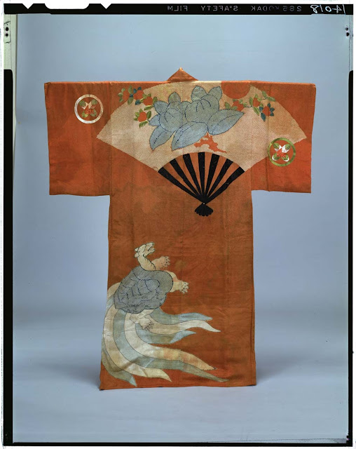 Oprócz konotacji ze starożytnościami, jestem również fanką kimon z epoki Edo - nasz XVIII wiek, które inspirowały tkaniny bizarre. Ich projekty są niebywałe, kompozycje, podziały płaszczyzn i wzory są odważne, dynamiczne i perfekcyjne. Wrzucam moje ulubione przykłady takich kimon z XVII i XVIII wieku, które robią na mnie piorunujące wrażenie: