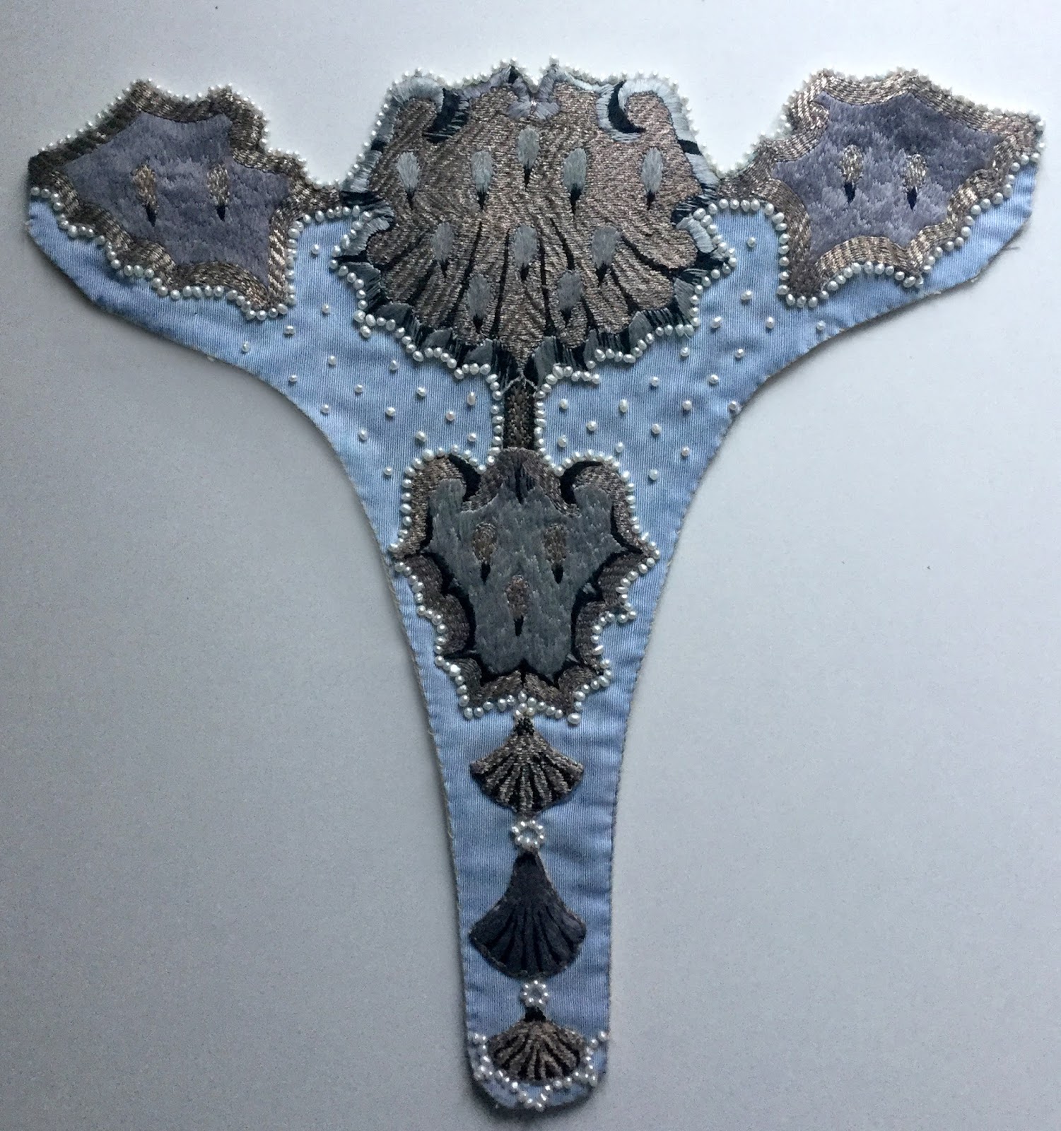 I decided to wore my old dress from my diploma, costume film. The party was in second haft of 18th century style, but it was a carnival, so I thought that the gown in opera costume style from the end of 17th century can be a good idea. And it was, it looked so exotic and spectacular. It's made with silk which I painted by hand in bizarre pattern. The corset was embroidered with silk and glass beads and it image a big lobster. You can see the details of that gown here. I made also the mask - kind of venice moreta with special handle to hold in mouth.